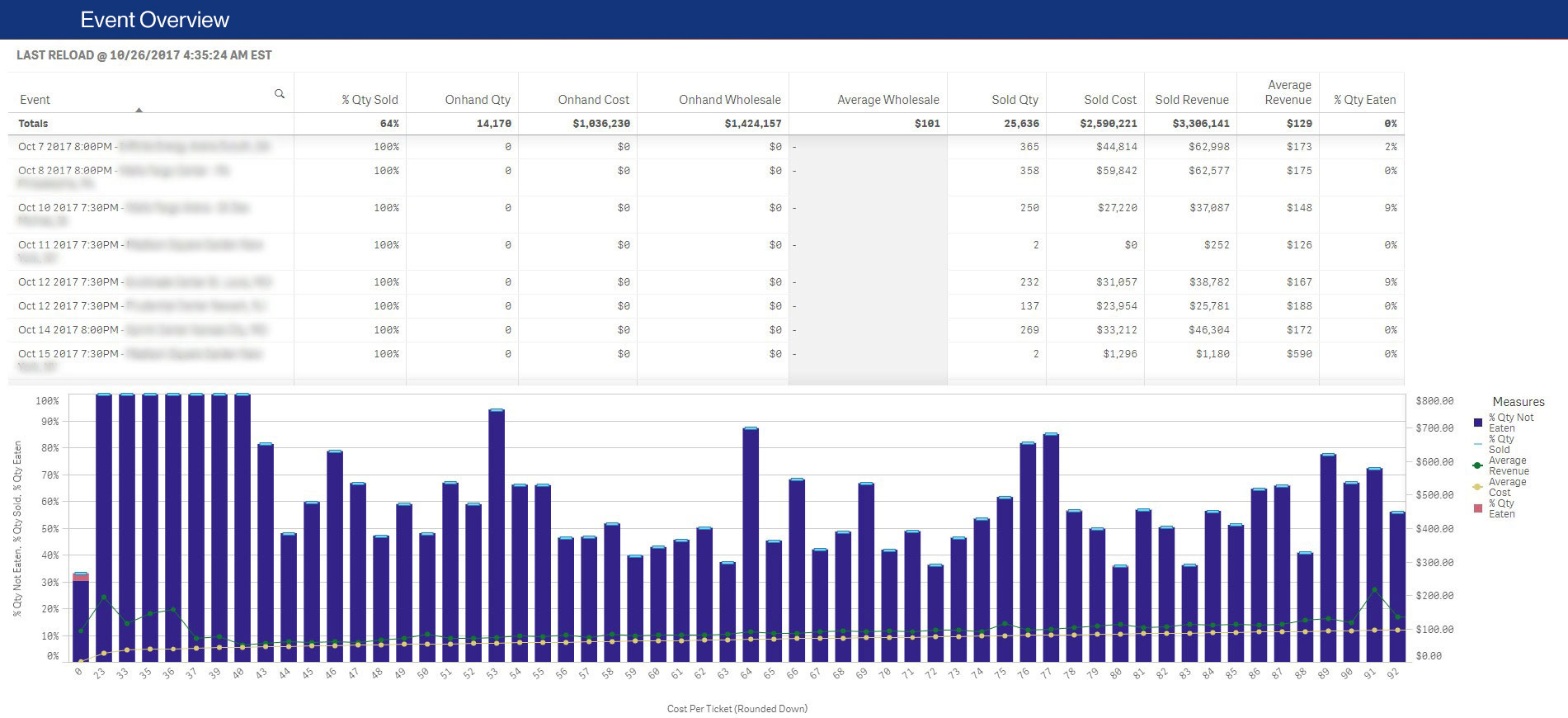 - • Current inventory pricing by event, price point and section